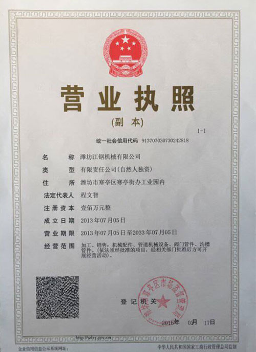 加工、销售:机械配件、管道机械设备、阀门管件、沟槽管件。(依法须经批准的项目,经相关部门批准后方可开展经营活动)。※※※ |